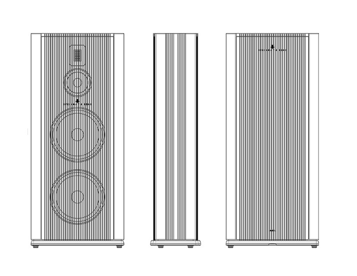 Model A speaker. Ebony Black Lacquer finish/ALL panels lacquard,, Gold Trim