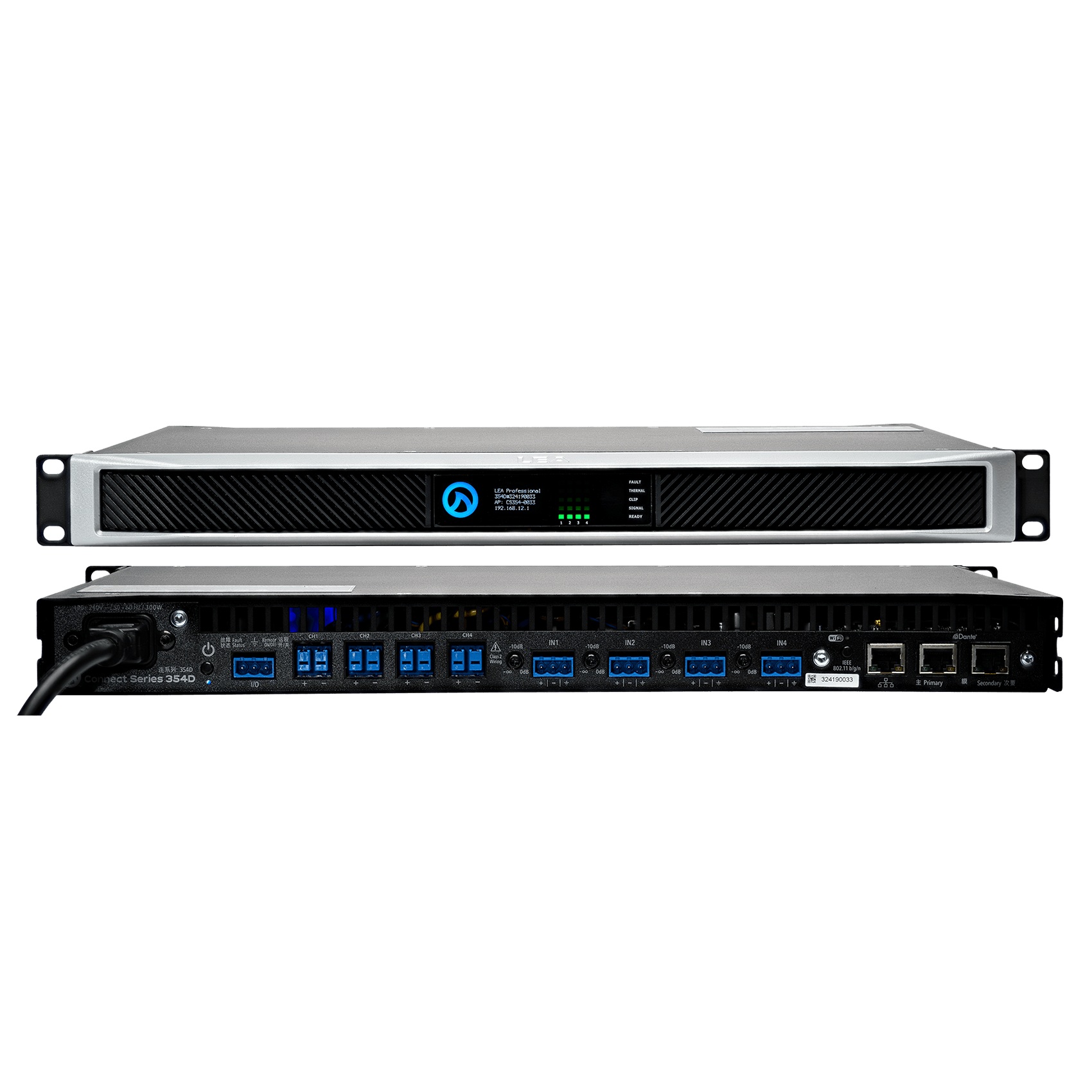 LEA 4 Channel x 350 watt 4 Ohm 8 Ohm 70V and 100V per channel Internal DSP W/ Crossovers and Dante