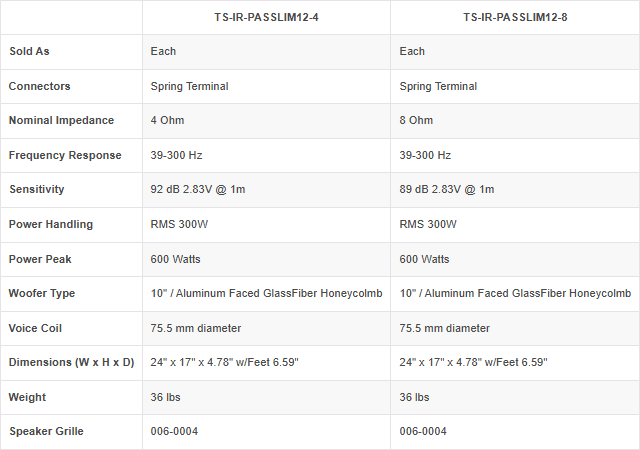 Triad InRoom Slim 12IN Passive Subwoofer - 8Ohm