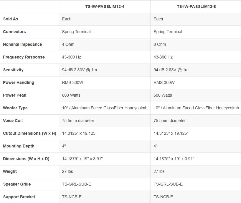 Triad InWall Slim 12IN Passive Subwoofer - 4Ohm