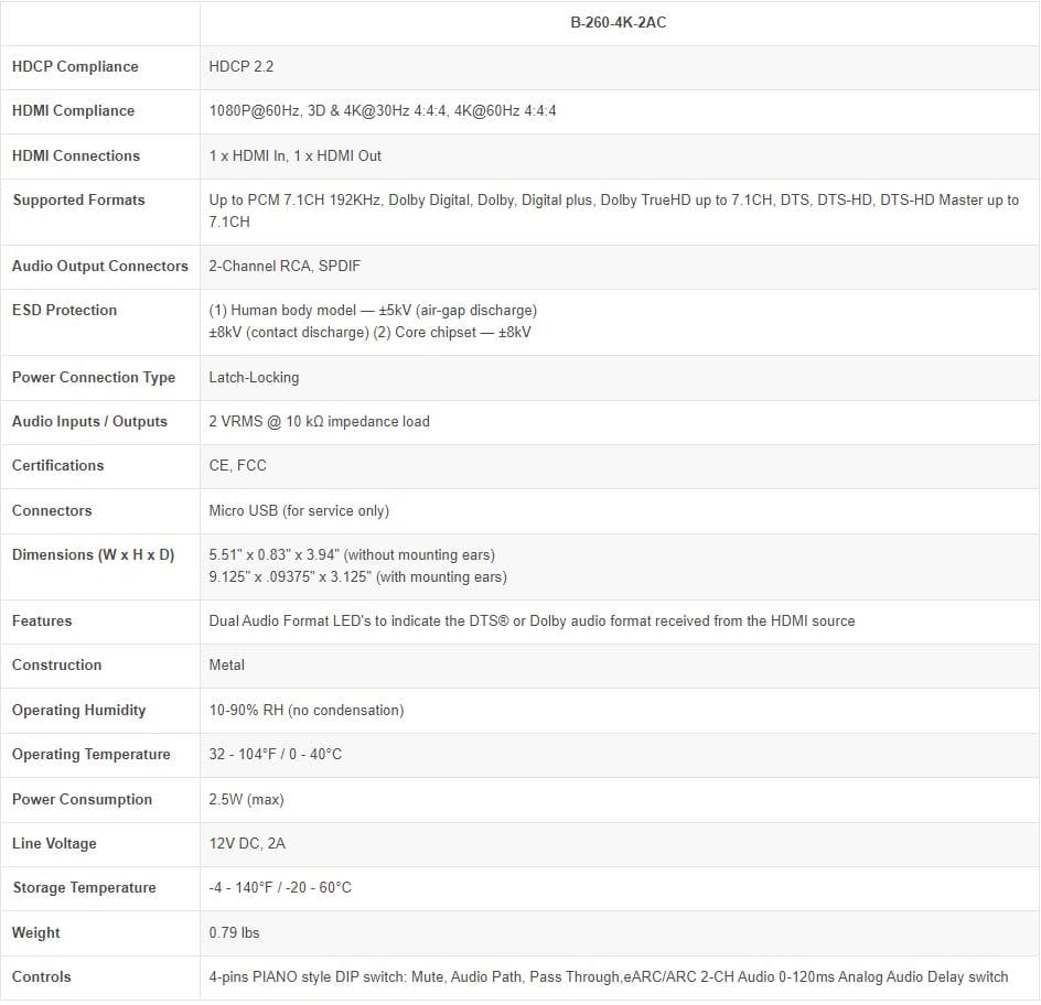 Binary™ 260 Series HDMI Audio De-Embedder