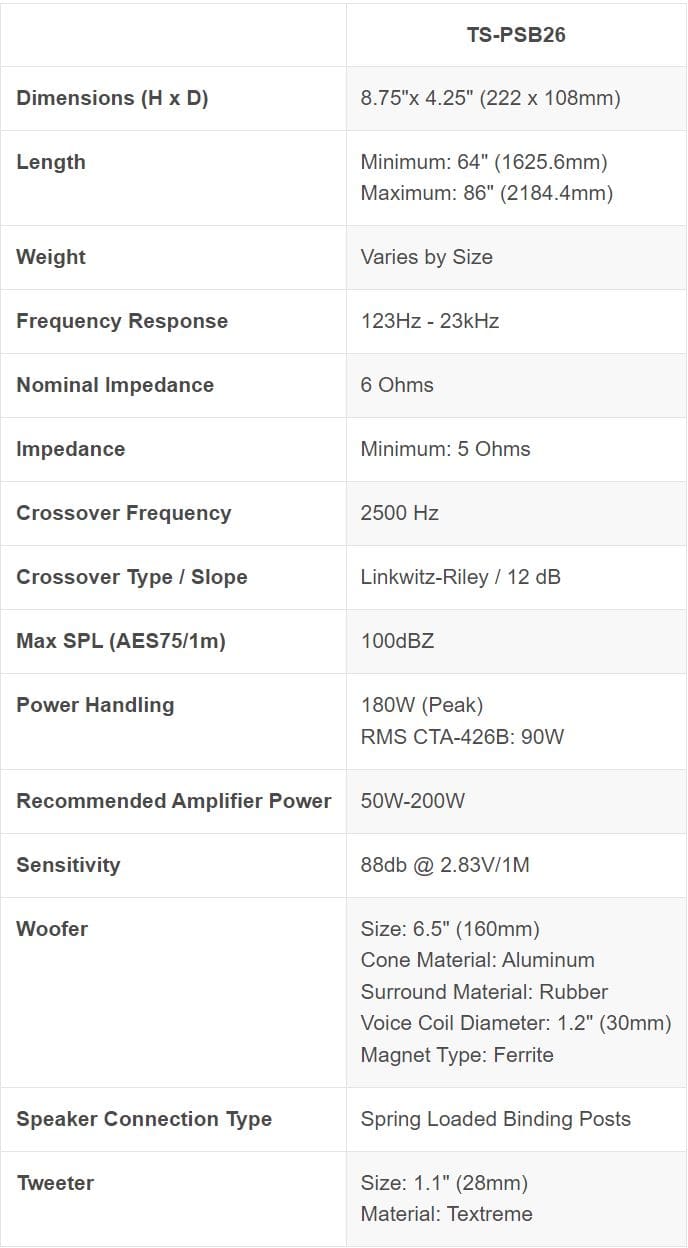 2.0 Passive Soundbar with 6.5" Woofers (Each) - Black Satin. Please specify the LENGTH in Notes/Comments.