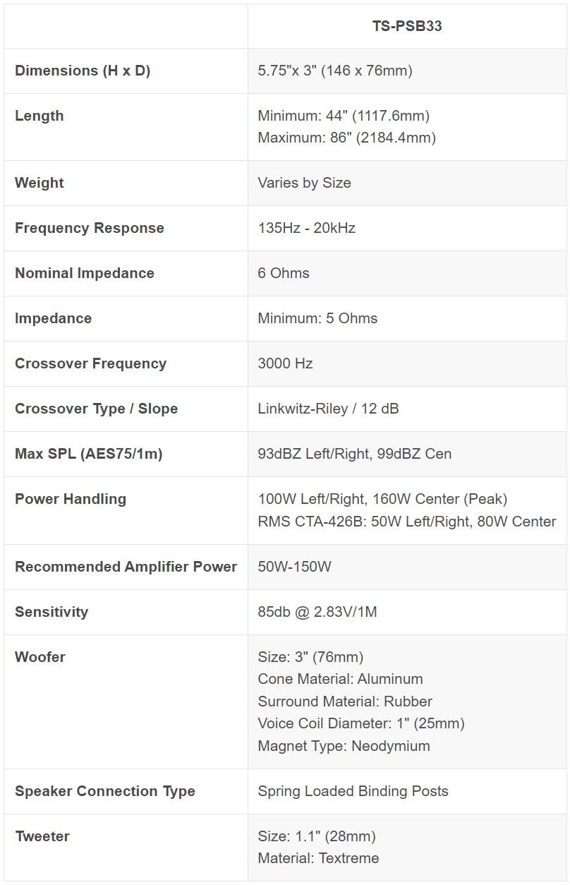 3.0 Passive Soundbar with 3" Woofers (Each). Please specify the COLOR and LENGTH in Notes/Comments.