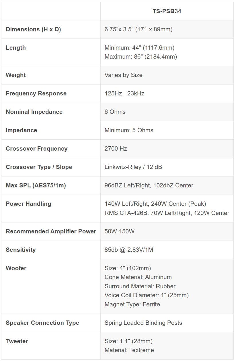 3.0 Passive Soundbar with 4" Woofers (Each). Please specify the COLOR and LENGTH in Notes/Comments.
