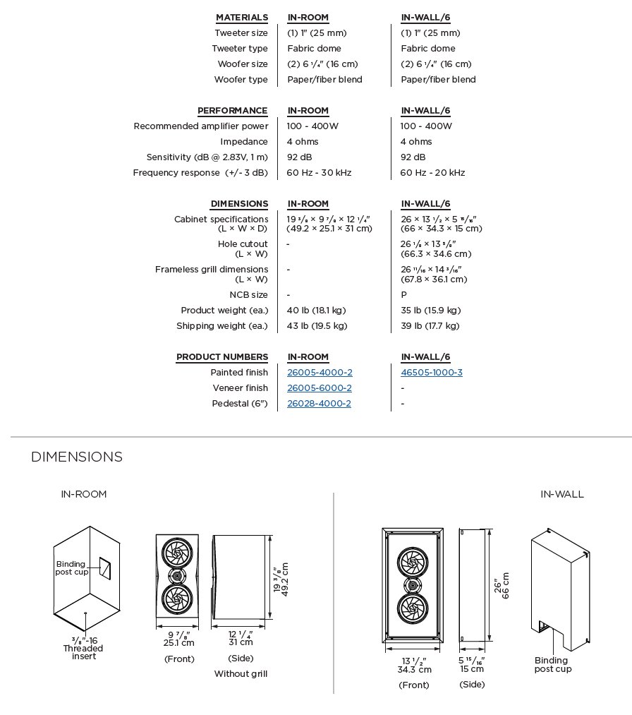 "Triad’s Gold Monitors are the benchmark of custom speakers—distinguished among the industry for high-fidelity audio. These speakers may be used full range in mid-sized, high-end media rooms or paired with Triad Subs in larger rooms for stunning, articulate rendering of music and movie soundtracks. Each monitor uses two Scan-Speak Revelator® drivers, acclaimed as some of the finest performers in the business, and a revolutionary Scan-Speak ring radiator tweeter with response extending to 50 kHz.